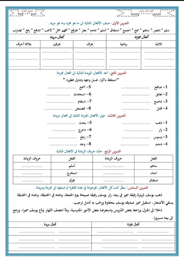 لغة عربيه الصف الاول الاعدادي (المجرد والمزيد -الفصل الدراسي الاول )